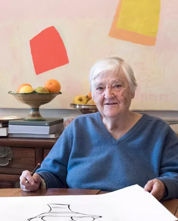 Née à Beyrouth en 1925, Adnan a étudié à la Sorbonne et à Harvard, et c’est à la fin des années 1950, alors qu’elle enseignait la philosophie à l’Université, qu’elle commença à peindre en Californie. C’est là qu’elle tomba amoureuse de la femme de sa vie, Simone Fattal ainsi que d’une montagne, le mont Tamalpais, au pied de laquelle elles vivaient. De cette passion découlent de nombreuses œuvres et le livre Journey to Mount Tamalpaïs (The Post-Apollo Press, 1986). Souvent conçues à partir d’un carré rouge, ses toiles sont des compositions abstraites avec des aplats de couleur appliqués directement à partir des tubes. Elle s’intéressait à la beauté immédiate de la couleur. Pour Simone Fattal, ses peintures « dégagent de l’énergie et procurent de l’énergie. Elles opèrent comme des talismans. »